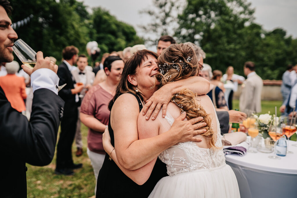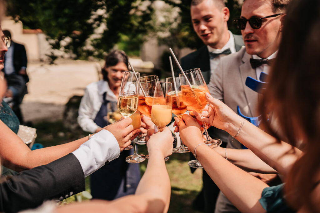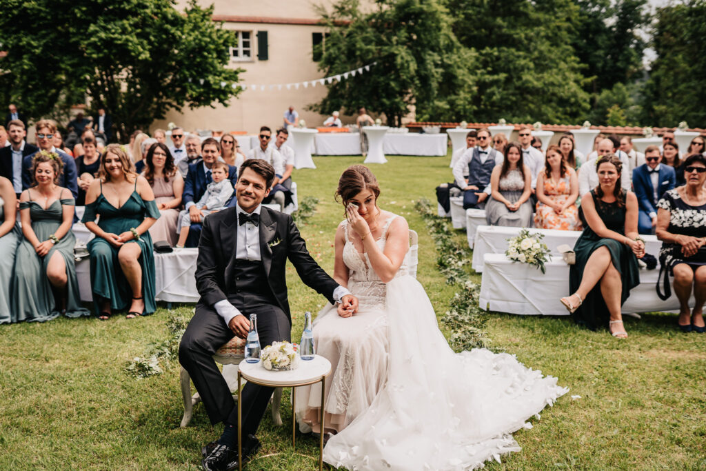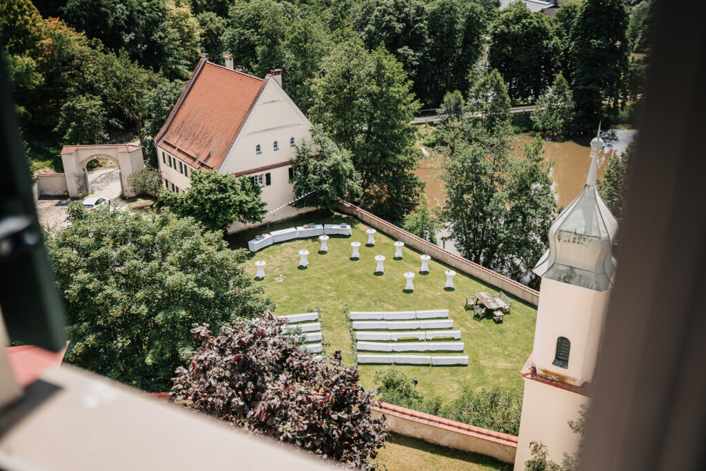 Der Schlossgarten bot die perfekte Kulisse für ihre freie Trauung. Umgeben von Natur, dem historischen Schloss im Hintergrund und ihren liebsten Menschen entstand eine Atmosphäre voller Nähe und Verbundenheit.