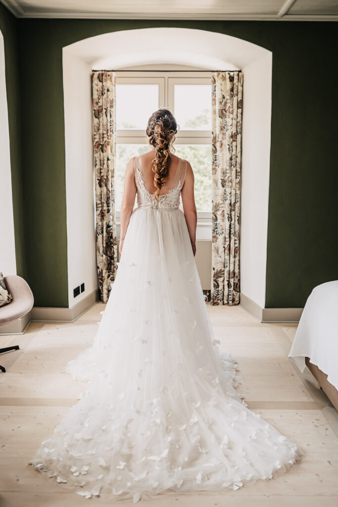 Umgeben von altem Baumbestand, sanftem Licht und ihren engsten Herzensmenschen begann ihr Hochzeitstag voller Vorfreude, leiser Aufregung und dieser einzigartigen Magie, die man nicht planen kann – sondern nur fühlen.